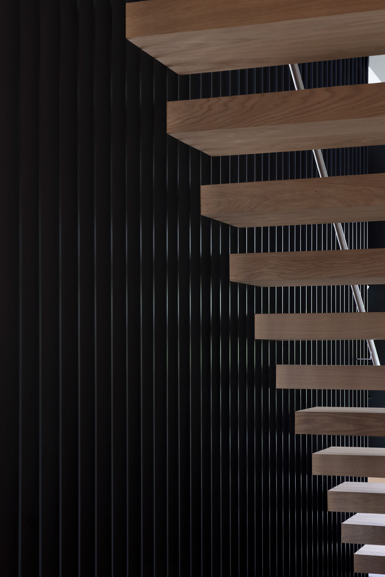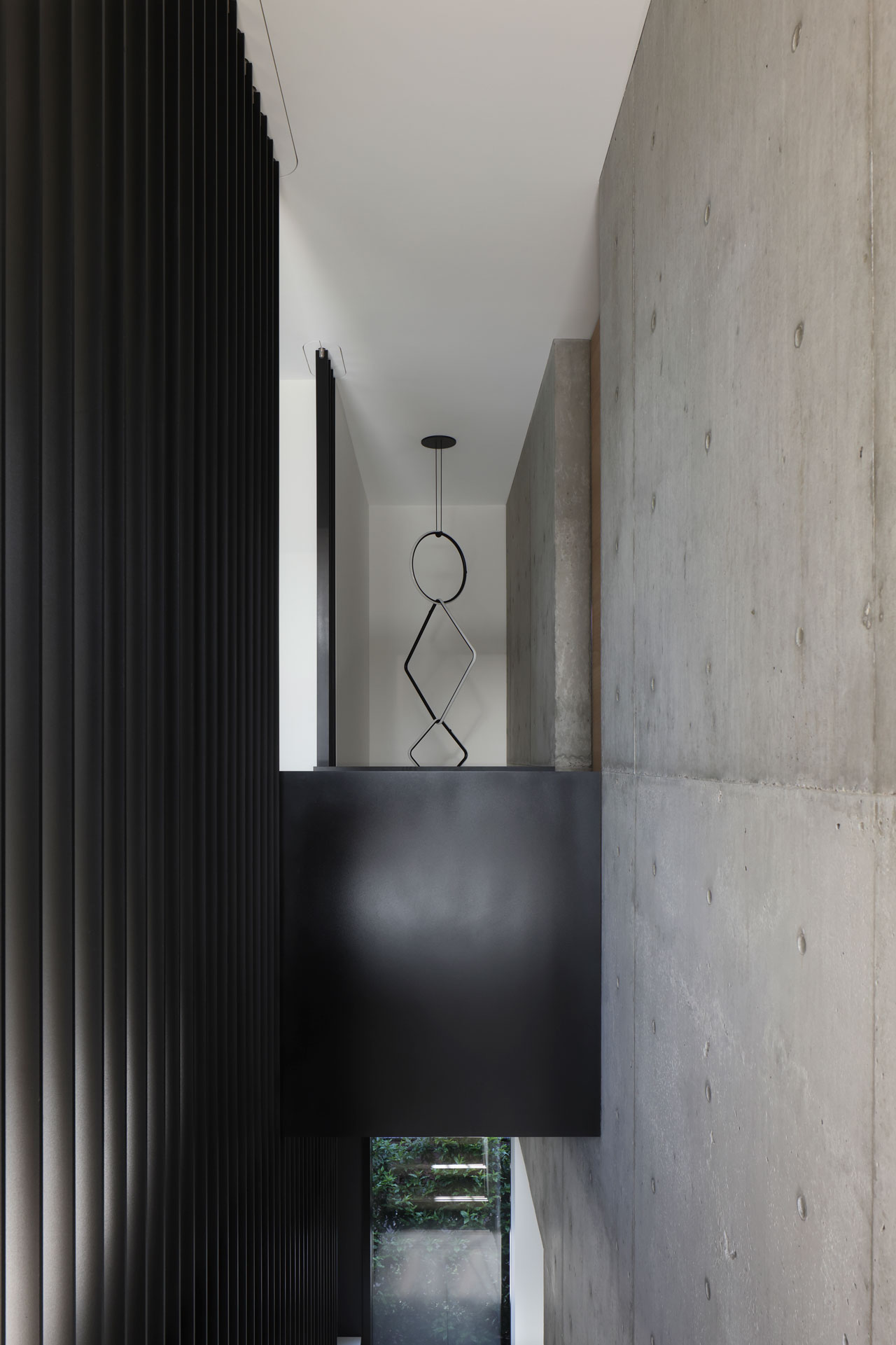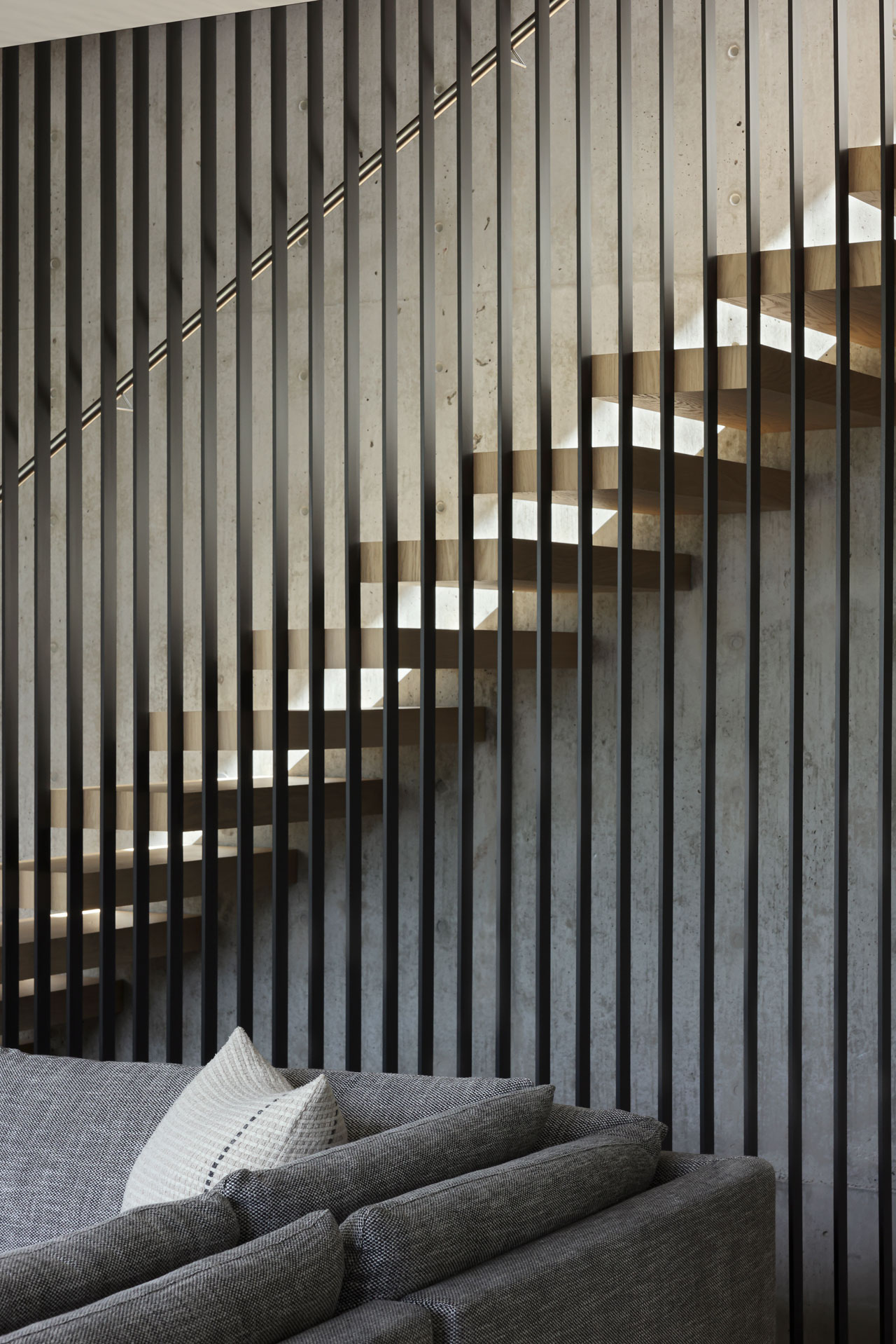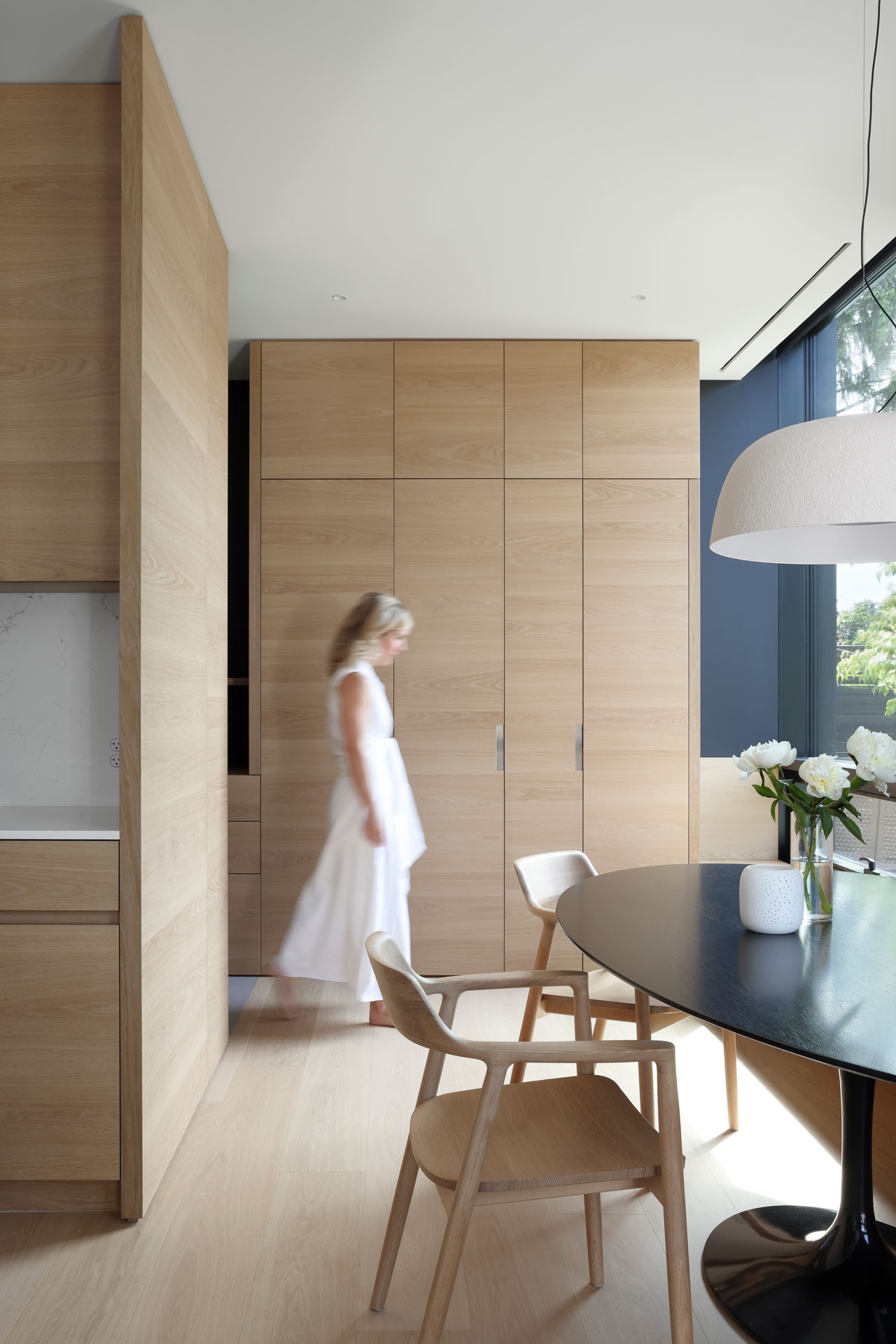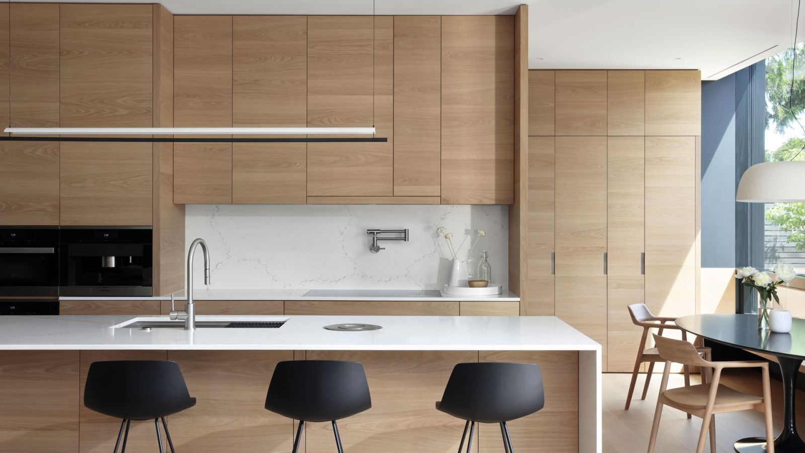 This exciting house features razor roof lines, Italian linear brick and warm wood accents. A masterful composition with intelligent detailing and relationships to the landscape.
