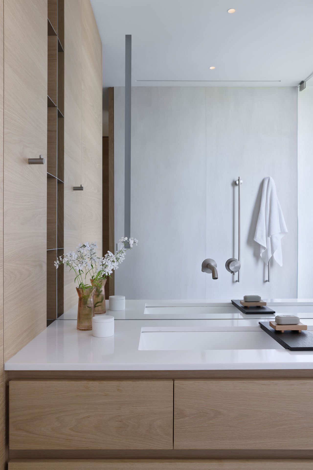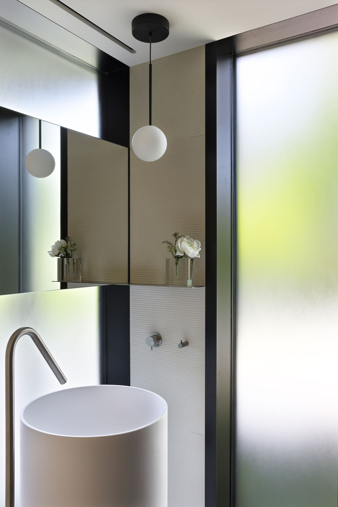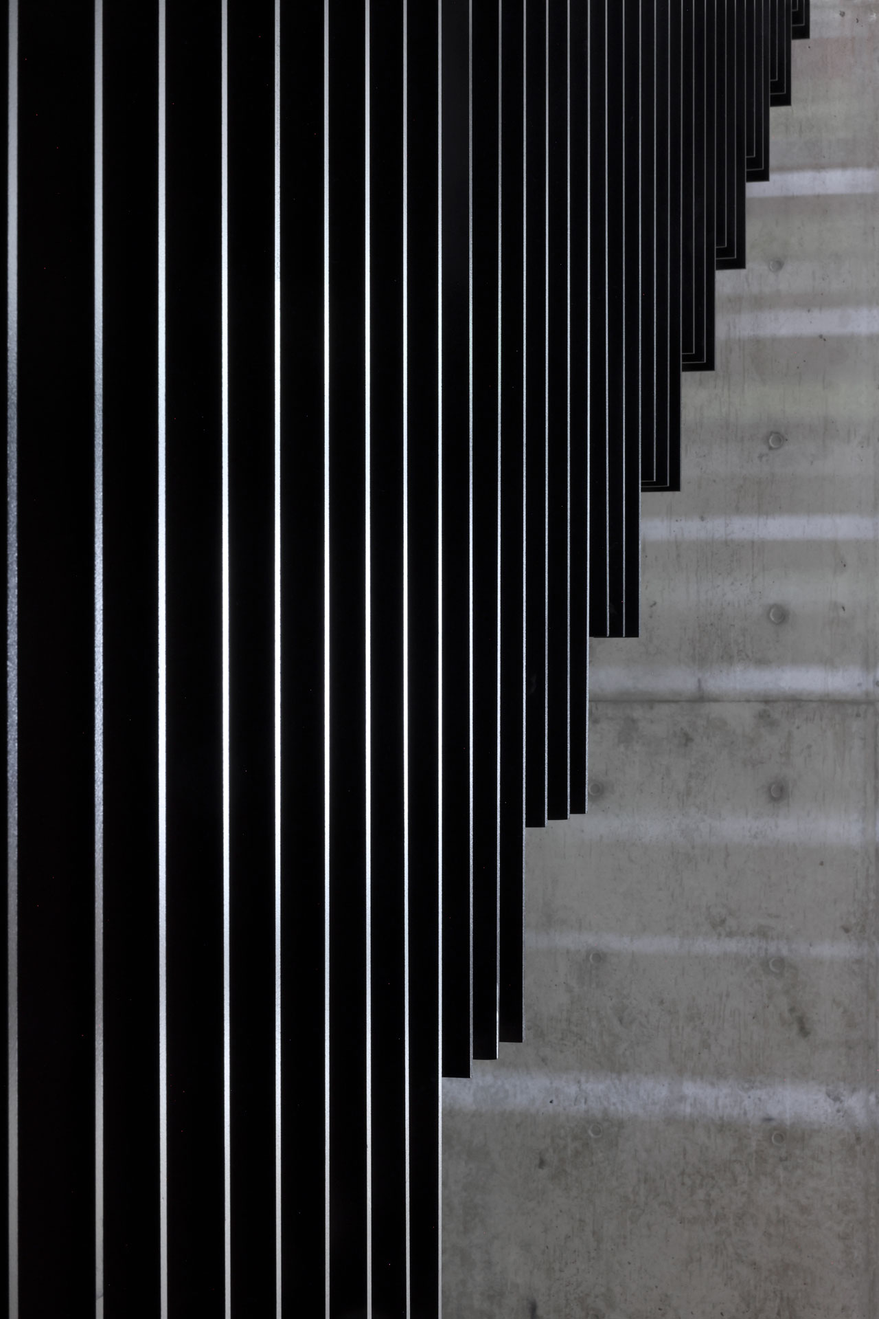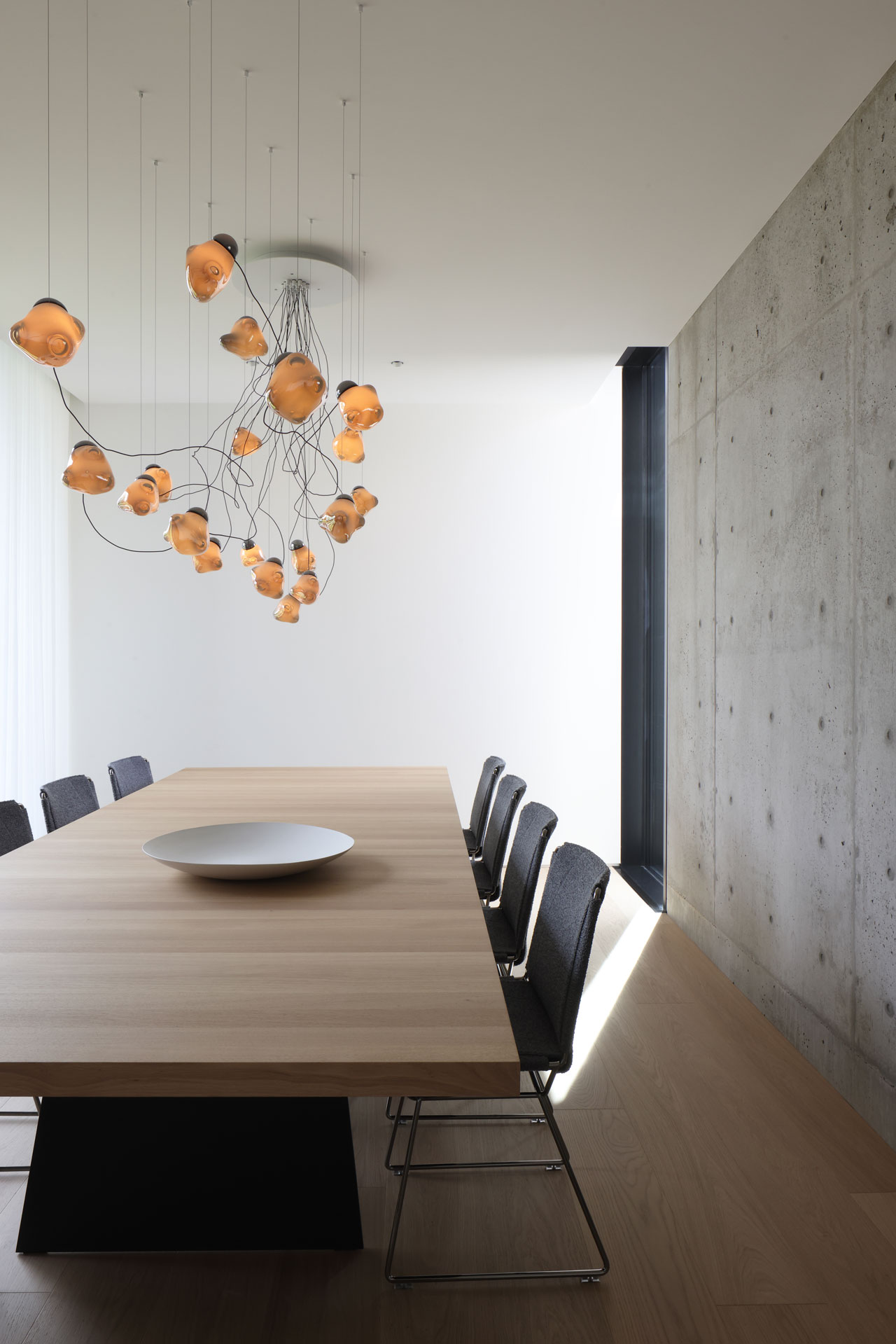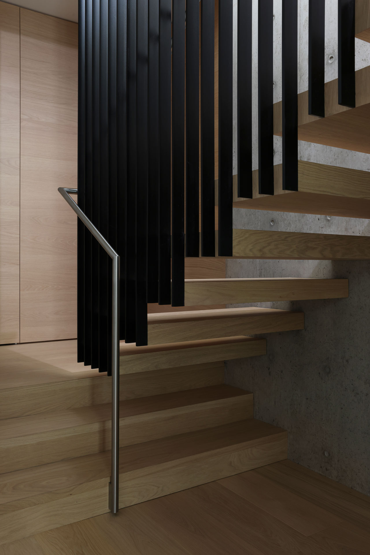 This exciting house features razor roof lines, Italian linear brick and warm wood accents. A masterful composition with intelligent detailing and relationships to the landscape.